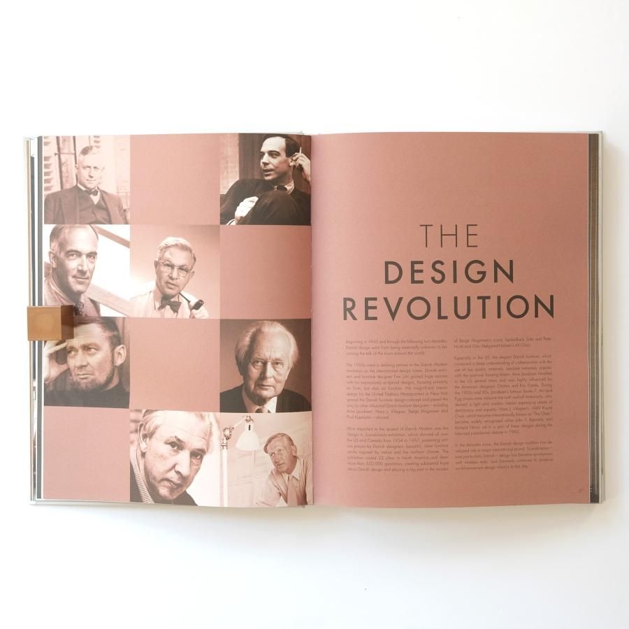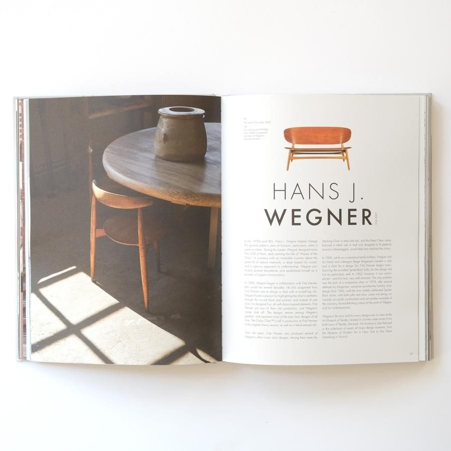 Kaare Klint コーア・クリント、Arne Jacobsen アルネ・ヤコブセン、Hans J. Wegner ハンス J. ウェグナー、Poul Kjærholm ポール・ケアホルム、Verner Patton ヴェルナー・パントン などの代表作品や、手掛けた個人住宅や商業施設などの美しいインテリアデザインの写真、プロダクトのスケッチなど豊富な情報が約200ページにわたり、美しい写真とともに紹介されています。