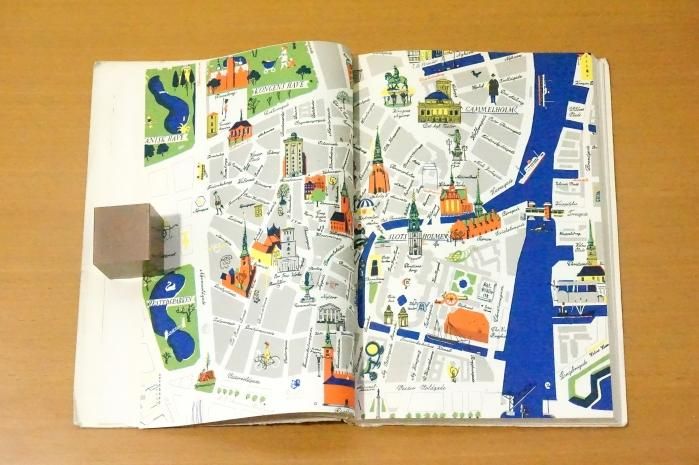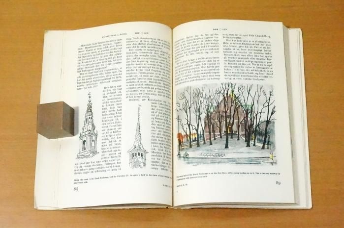 1945年に初版が発行されたもので、こちらは1955年版。地図やイラストのデザインが素敵な一冊です。デンマーク語ですが、角ページの下部に巻末に英語での解説もあります。