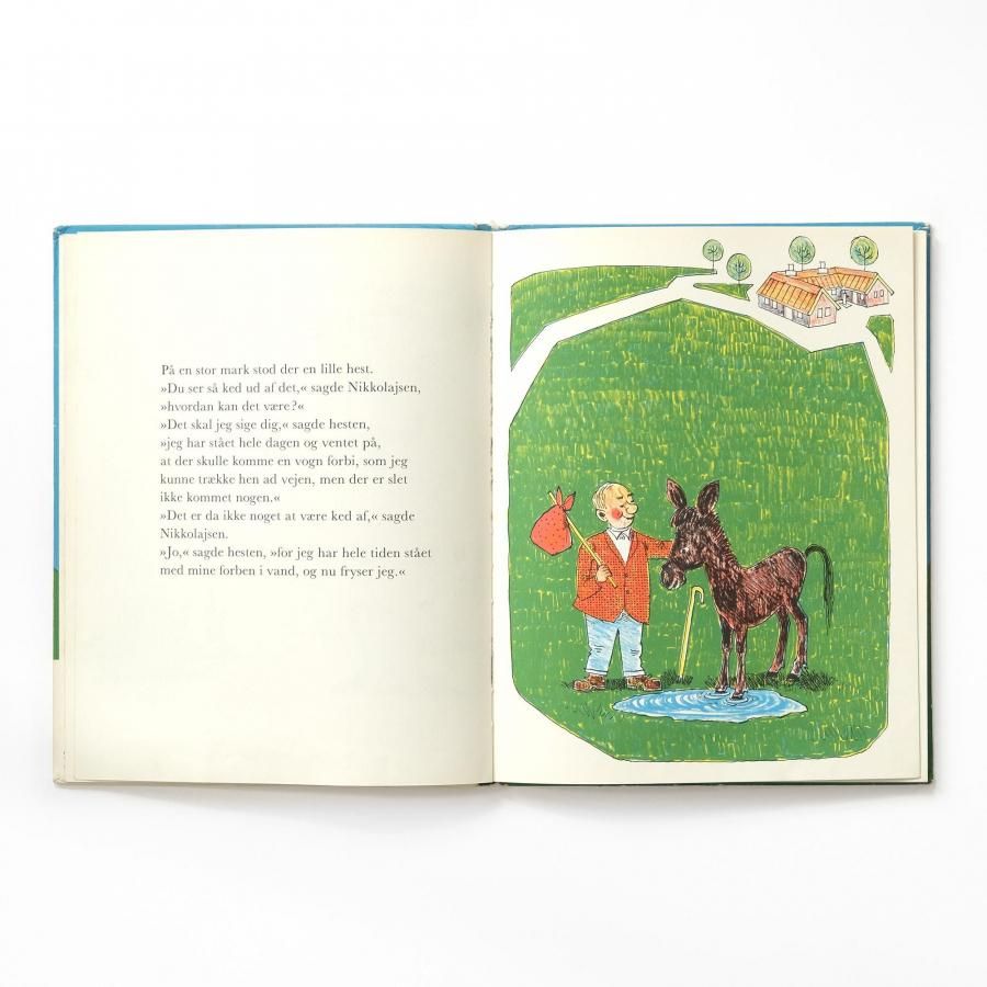 主人公のニコライセンが、旅の途中で動物や人に服をあげていく物語。1960年代のヴィンテージブックです。